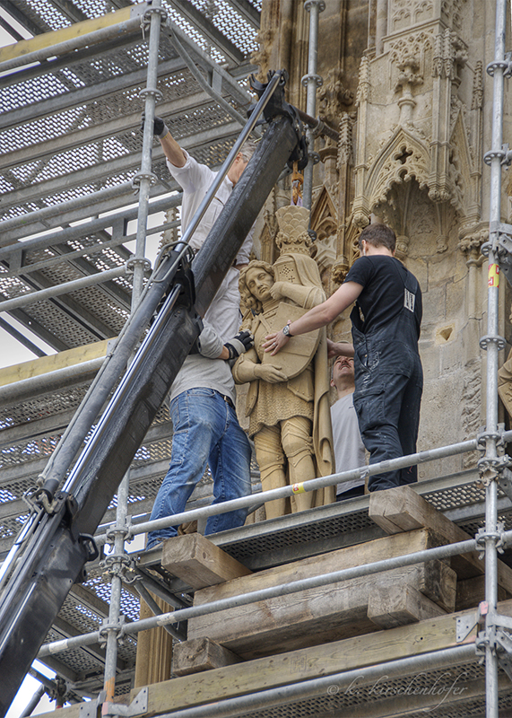 Stifterfiguren Katharina von Böhmen lebensgroß, 1870Demontage, Lasereinigung, Unterdruckkonservierung, figurale Rekonstruktion, Restaurierung, Montage