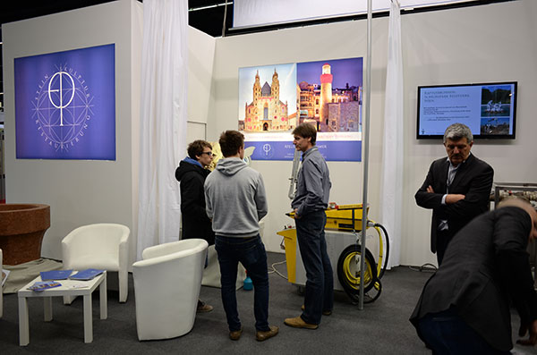 Managing Director Erich Pummer, Bmstr DI (FH) DI Ewald Zederbauer, Ernst Wandl and Mag. Michael Soska were available for questions and presented live the patented Vacuum-Consolidation-Method (VAC) and the natural stone cleaning using laser technology. Likewise, positive and negative of various impressions and an original, already restored Gothic baptismal font were exposed.