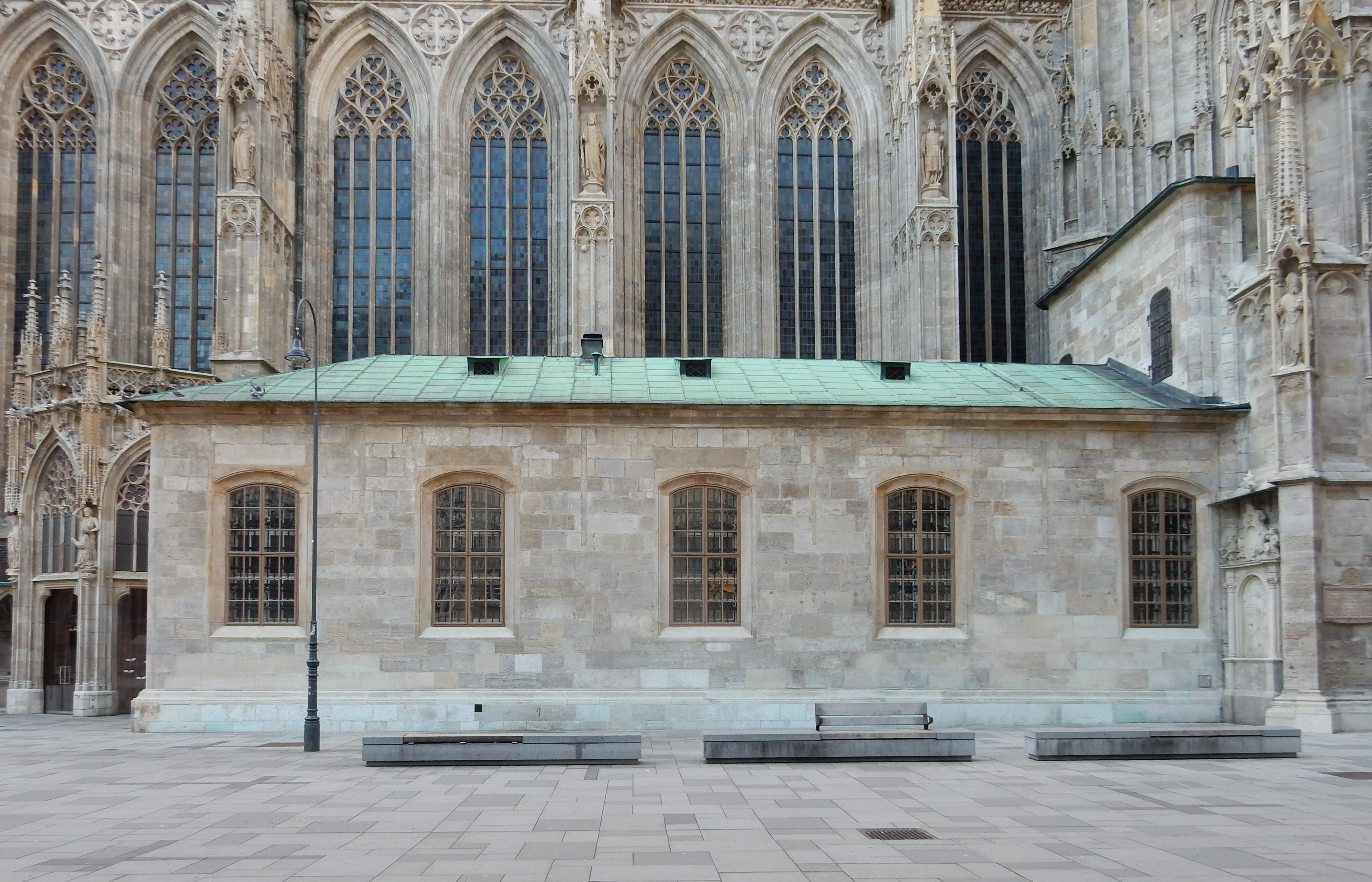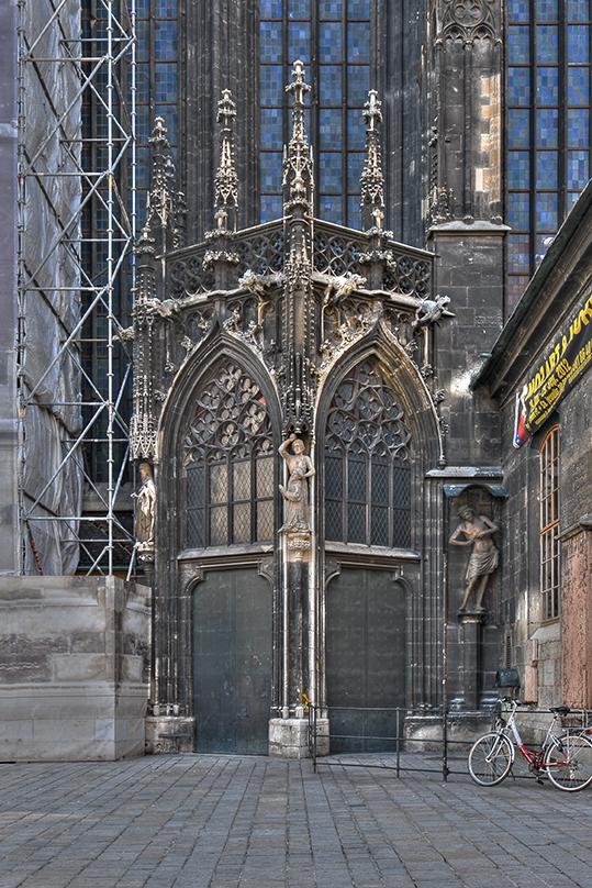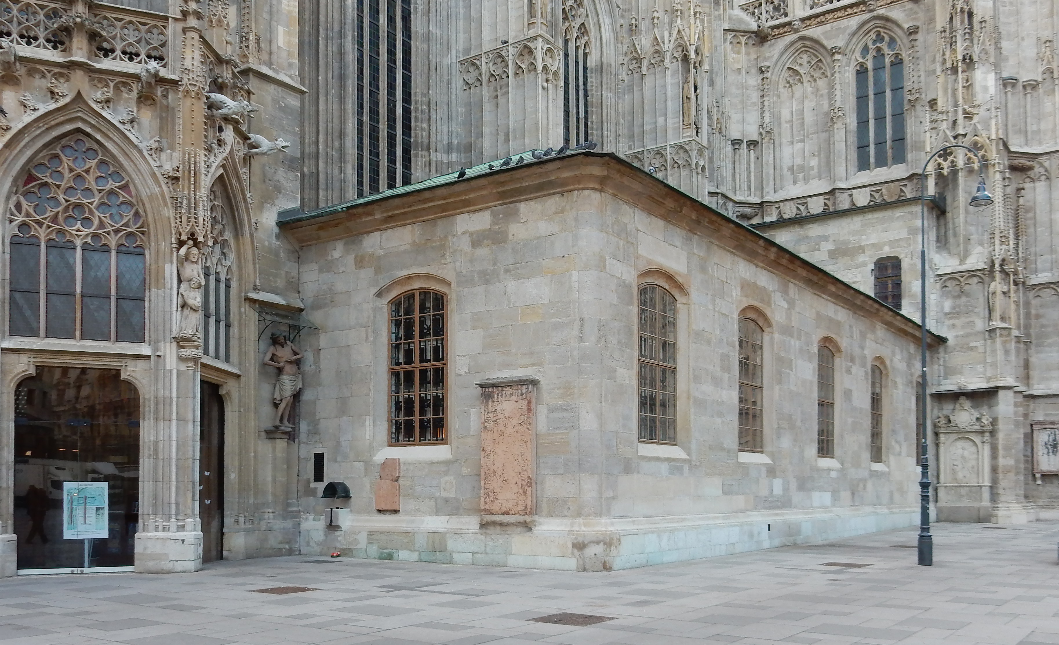 Eligius chapel around 1360 - 1400 and Bartholomew chapel until 1437, Singertor 1440 - 1450, restored 1894 - 1896, Friedrich pediment 1430 - 1440, restored 1982ff and 1928, decoration of other pediments 1853/1854, restored 1882ffLaser cleaning of all sculptural and ornamental parts, VAC of the St. Stephen´s statue, restoration and preservation of all architectural elements and surfaces