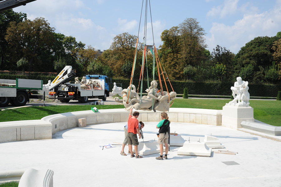 Baroque fountain, sculptures of shell limestone from Zogelsdorf (larger than life-size), 18th centuryvacuum preservation, reconstructions, vacuum hydrophobisation