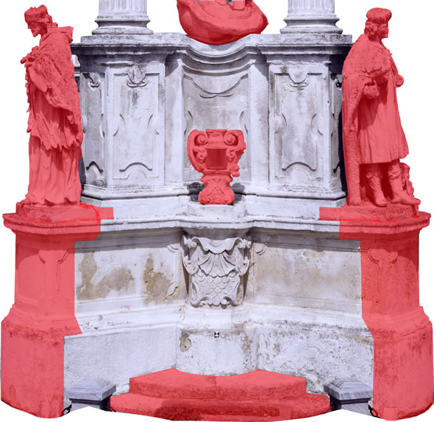 Baroque monument in limestone from Zogelsdorf, Joseph M. Götz, 1736Drying, demineralisation, vacuum preservation, restoration