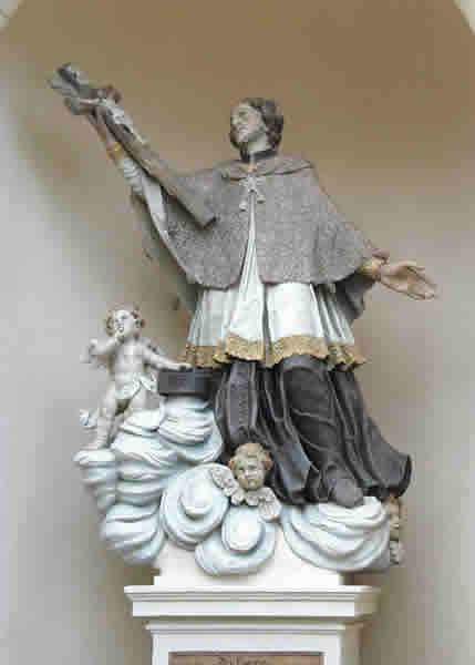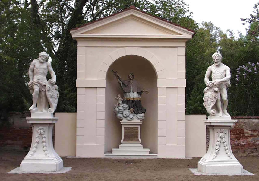Nepomuk polychrome and guardian statues, zogelsdorfer limestoneDismounting, figural reconstruction, restoring, polychrome paint, foundation, erection