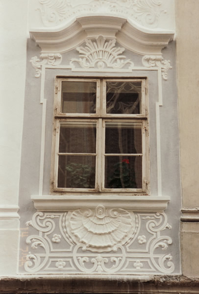 Baroque facade, window stucco decor, 18th century